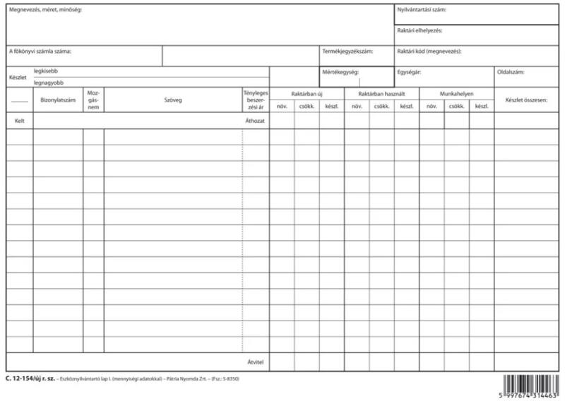C. 12-154 Eszköznyilvántartó lap, mennyiségi adatokkal (C12154) - nyomtass-olcson