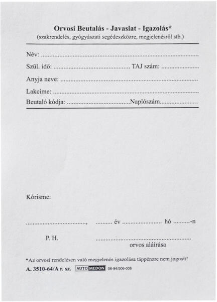 Nyomell Orvosi beutalás-jav. -ig. A. 3510-64/a (A351064A) - iroda-ellatas